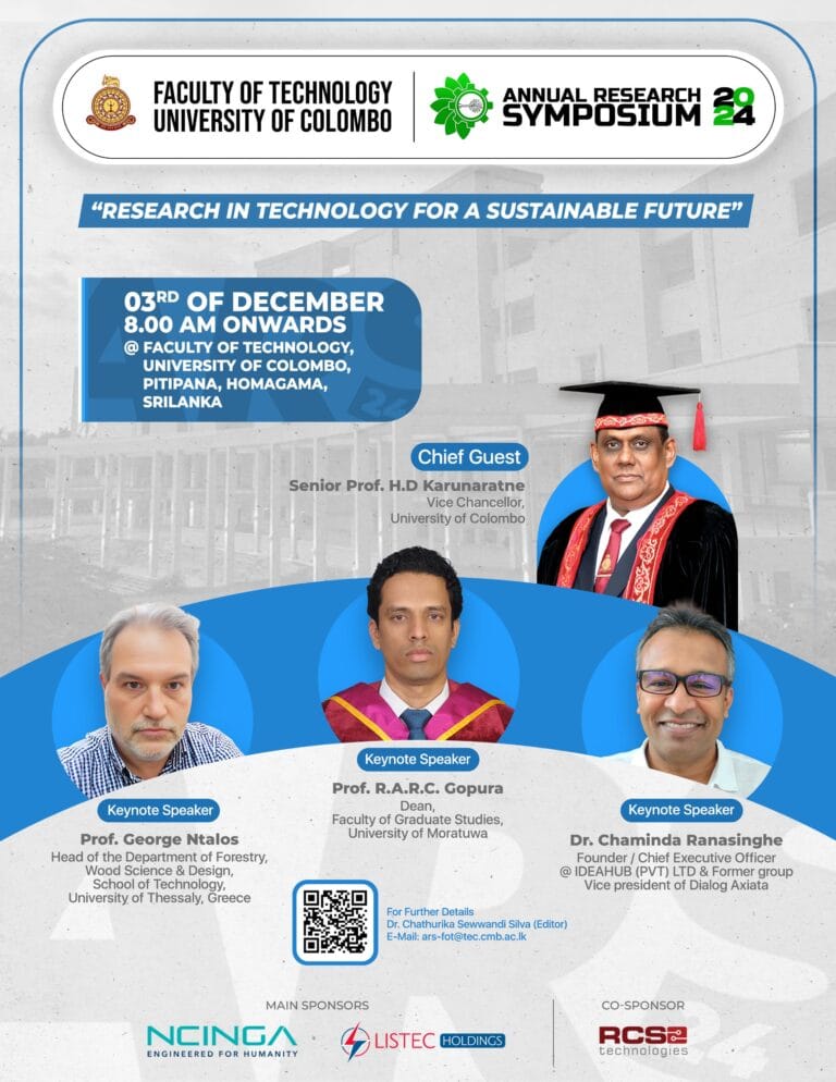 We are thrilled to announce the Annual Research Symposium 2024 , hosted by the Faculty of Technology, University of Colombo! 📅 Date: 3rd December 2024⏰ Time: From 8:00 AM onwards📍 Venue: Faculty of Technology, University of Colombo This year’s theme,…